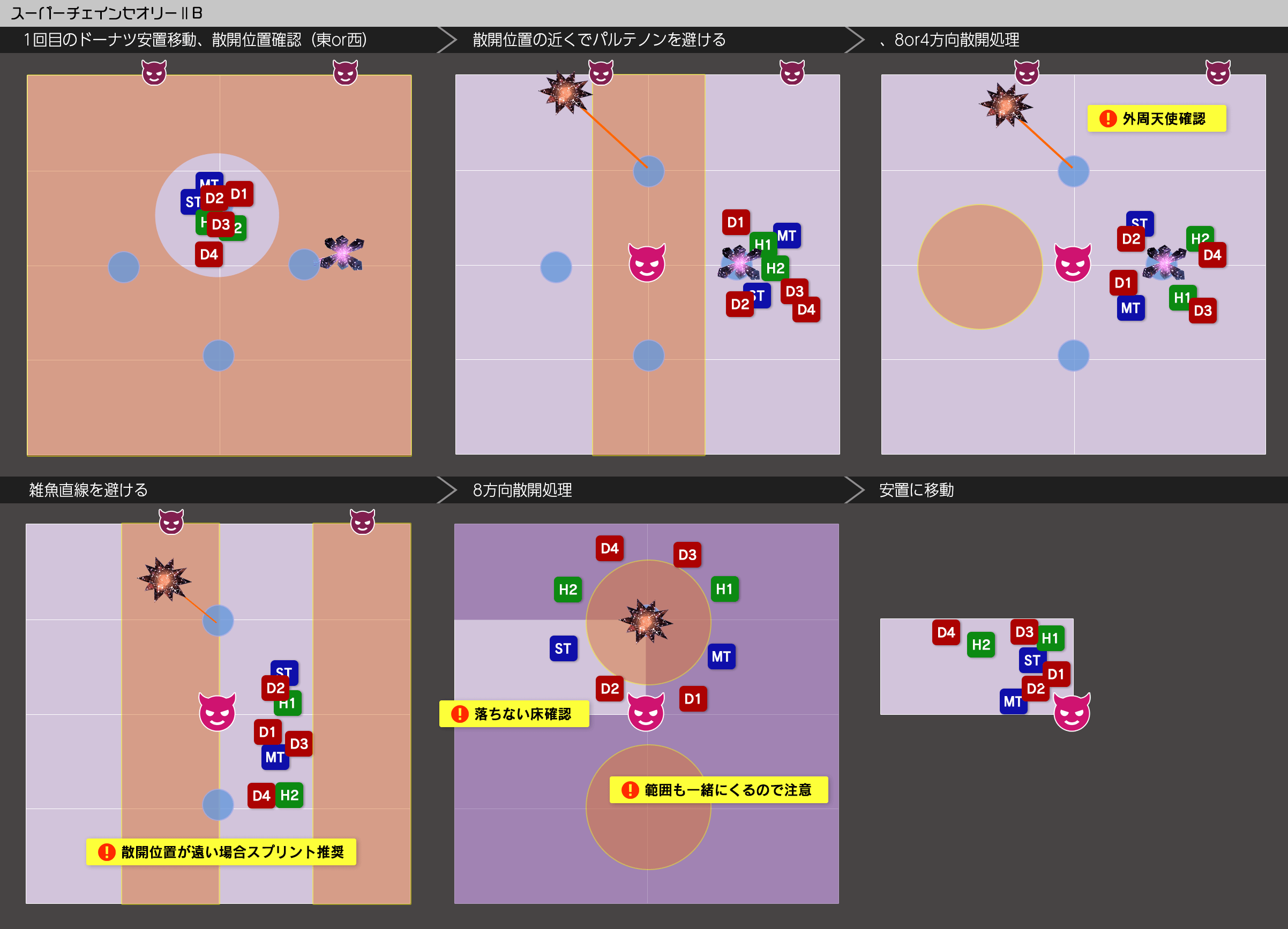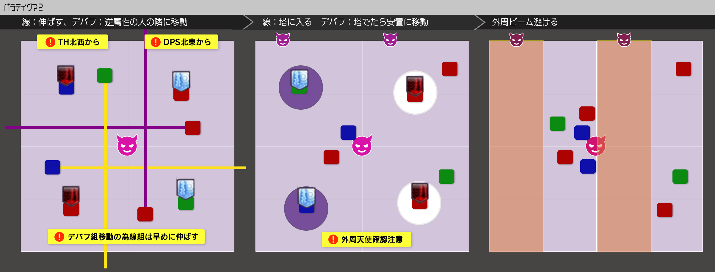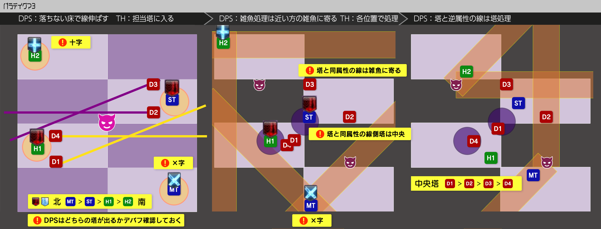 - タンク:外周天使側で無敵トリニティソウル処理(MTは処理後のAA痛いので注意)